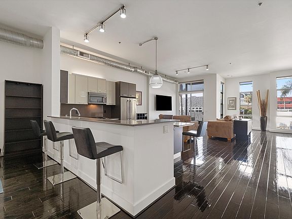 Experience modern living at the architecturally distinct Steel Lofts, where contemporary design meets the energy of the Marina Arts District. This spacious second-floor residence features high ceilings, expansive windows, and polished hardwood floors that create a bright, airy atmosphere. The flexible floor plan allows for multiple configurations, with many residents utilizing the additional space as a den, home office, or even a second bedroom. The kitchen features sleek cabinetry, a large center island, and high-end appliances that blend seamlessly into the modern design. Both bathrooms feature refined finishes, one with a soaking tub and the other with an oversized walk-in shower. A large patio provides the perfect extension of the living space for relaxing or entertaining outdoors. Additional highlights include in-unit laundry and two secured parking spaces in a gated garage. Conveniently located near Abbot Kinney, Venice Beach, and the Marina Marketplace, this home combines style, function, and convenience in one of the Westside's most desirable neighborhoods.