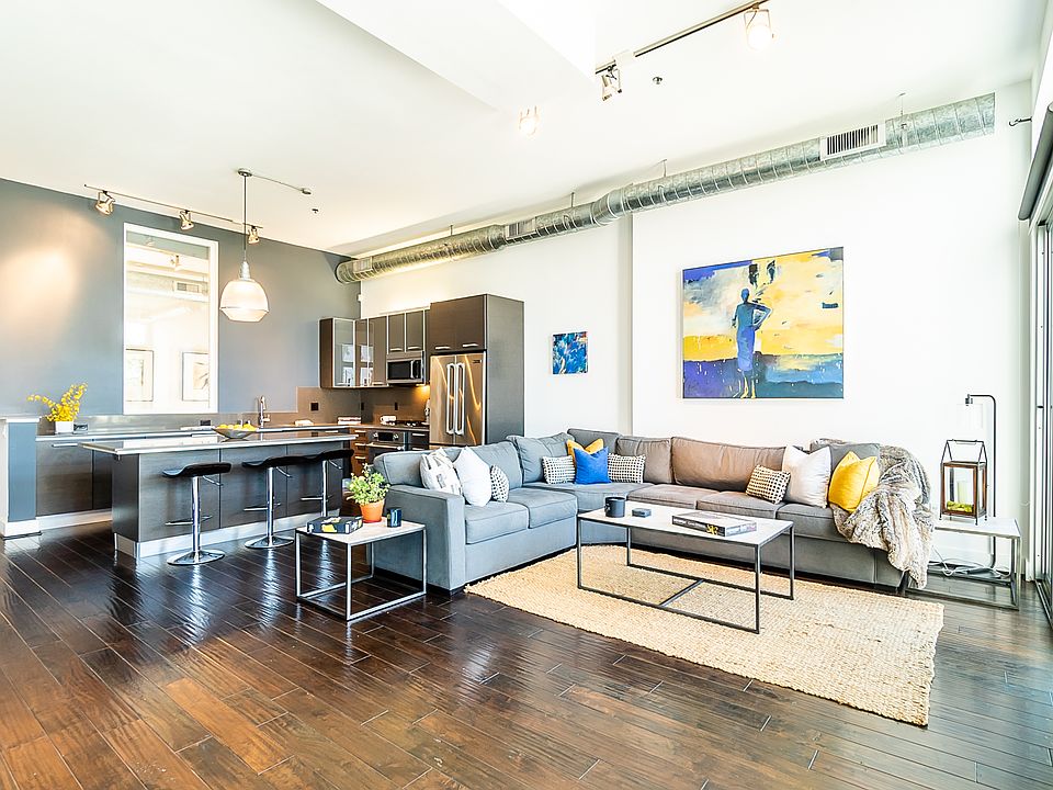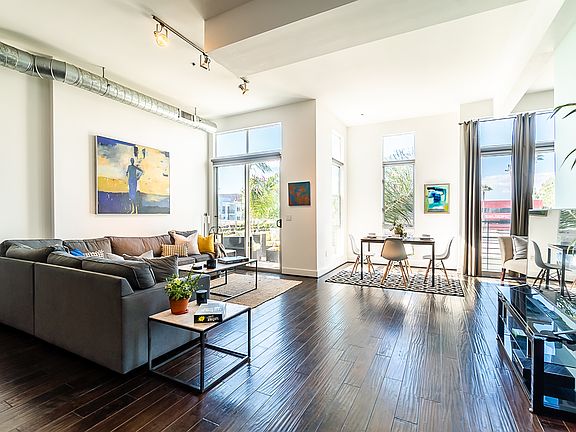 Rare offering at coveted Steel Lofts in the Marina Arts District. Enjoy the Coastal lifestyle and ocean breezes in this 2 bedroom, 2 bath front-facing corner home, with one common wall and no one above you. High ceilings and natural light give a limitless creative feeling. A wall of windows and sliding door opens to a private balcony with panoramic views of Santa Monica and the Hollywood Hills. Gourmet kitchen features Caesarstone counter-tops, Italian cabinetry, custom island with lots of storage and stainless steel appliances. Philippe Starck designed Duravit fixtures in bathrooms. The master bath has a glass enclosed shower with dual shower heads and bench. Second bath features a pillowed soaking tub. Rich dark hardwood floors continue the impeccable modern design. Tranquil secure building with only 28 units and low HOA dues. Gated garage with 2 parking places and 14 guest spaces. Enjoy the ambiance of a private boutique hotel, minutes to Abbot Kinney, Marina Marketplace and Beach.
