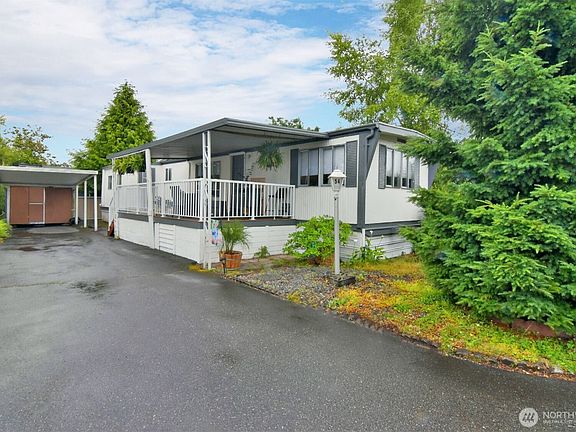 Pre Christmas Special in Coveted Carriage Club 55+ community.!! First month space rent FREE !! Plus a one year warranty on all appliances including Washer and dryer. Home is move-in ready. Everything has been updated from top to bottom so there is nothing more for you to do but enjoy. Freshly painted inside/out, new plush carpets. Modern & up-to-date, efficient kitchen w/stainless steel appliances, convenient eating bar plus plenty of space for a breakfast table. Rain or shine, relax on the new covered TrexDeck. Gas stove recently inspected & has a full propane tank. Roof recently sealed. Never run out of hot water again with the new tankless water heater! Conveniently located near I-405 and I-5, Alderwood Mall, shopping, dining & medical.