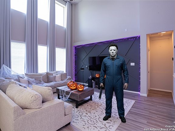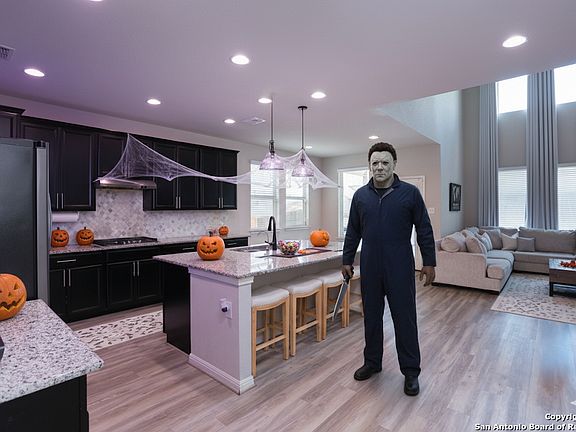 Deals so good it's scary-no tricks, just treats at 13320 Romulus Way. This Meritage Evergreen plan delivers 3,182 sq ft, 4 beds | 2.5 baths, 2 living areas, theater room perfect for movie nights or gaming. Backing to a greenbelt, the home adds outdoor living with a deck, hot tub, and large storage shed. Energy perks abound: fully paid-off solar panels (seller reports ~$35/mo average electric bill), spray-foam insulation, and high-performance windows. A Tesla EV charger (adapter-friendly for most EVs), water softener, and reverse osmosis convey. Inside, a smart, modern layout offers easy flow for daily living and entertaining. Located in Arcadia Ridge with trails, parks, and community amenities; convenient to the 211/Potranco corridor for shopping/dining and an easy commute to Lackland AFB. Ask about an assumable interest rate (subject to lender/servicer approval) or preferred-lender buydown options. Schedule your tour-before this one vanishes.