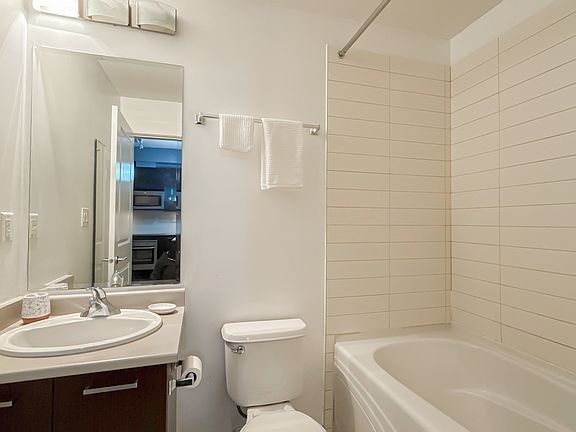 Chic Junior 1-Bedroom Condo in Prime Location at Surrey Central. Step into style with this thoughtfully designed junior 1-bedroom condo, perfect for urban living. Featuring quartz countertops, sleek stainless steel appliances, and an open-concept layout, this home blends modern finishes with everyday functionality. Situated in an unbeatable location, you're steps away from shops, cafes, transit, and everything that makes city life exciting. Enjoy your coffee in the patio that faces lush greenery of the courtyard or have a work out in the building's gym.