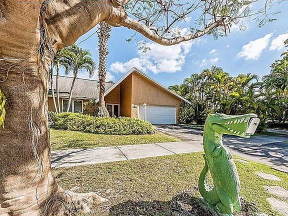 Enjoy everything that South Florida has to offer in this well appointed 3/2 home in Calusa Club Estates. Home features an upgraded kitchen with real wood cabinets, granite counters, stainless steel appliances, impact windows/doors, updated bathrooms, screened-in patio, lush landscaping, heated spa and a sparkling heated pool. Located on a quiet street with very little traffic and in one of the best schools district. The Alligator mailbox welcomes you home! By Appointment.