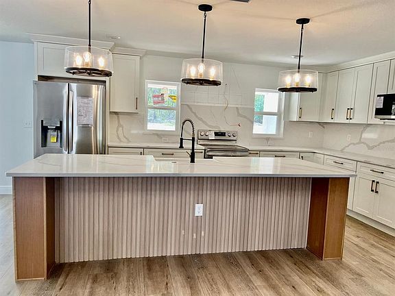 Beautiful Brad New Construction home in Ocala featuring 4 bedrooms and 3 bathrooms, a spacious 2200 sq ft heated area, and a 3083 sq ft total plan. The kitchen showcases an open-concept layout with a modern island and comes fully equipped with stainless steel appliances refrigerator, range, microwave and dishwasher. The master suite is a true retreat, featuring a GORGEOUS TILED WALK-IN SHOWER and dual vanities. Additional highlights include a covered back patio, a convenient 2-car garage and stylish modern finishes throughout. Ideally CENTERED between everything you need a few minutes from restaurants, Walmart, Publix, and more, and just minutes from OCALA WORLD EQUESTRIAN CENTER. Don't miss this opportunity—schedule your showing today!