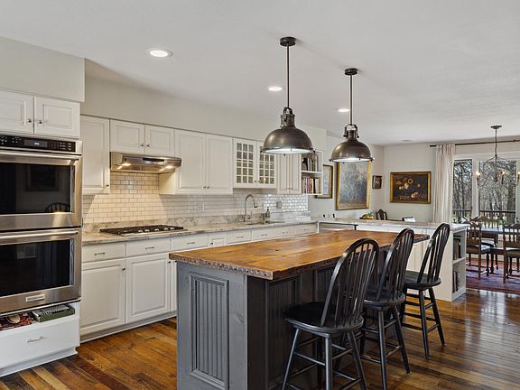 Inspiring Baxter home with the perfect balance of modern luxury and classic style. You will love the antique reclaimed hardwood floors, gourmet kitchen with double oven, high-end stainless appliances, natural stone countertops, custom reclaimed wood center island & pantry, main floor primary bedroom suite with well appointed bath, custom built-ins throughout, main floor laundry, wood burning fireplace, walk-in closets, central vac, full finished walkout lower level with three additional bedrooms, full bath, office, wet bar and exercise room. New decking and custom metal railings, inviting front covered porch with lots of space for entertaining, enjoy the well cared for perennial gardens, and oversized heated and insulated three car garage.