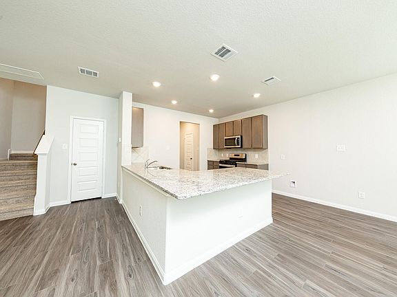 Love where you live in River's Edge in Conroe, TX! Home is zoned to the excellent Woodlands schools - Eissler Elementary School, Mitchell Intermediate School, McCullough Junior High School, and Woodlands High School. The Lowry floor plan is a spacious 2-story home with 4 bedrooms, 2.5 bathrooms, and a 2-car garage. The first floor offers the perfect entertainment space with an open kitchen overlooking the dining and family rooms and vinyl plank flooring! The gourmet kitchen is sure to please with 42" cabinets, granite countertops, and stainless-steel appliances! Upstairs offers a private retreat for all bedrooms! Retreat to the Owner's Suite featuring double sinks with granite countertops, a separate tub and shower, and a walk-in closet. Don't miss your opportunity to call River's Edge home, schedule a visit today!