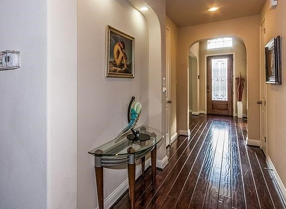 Exquisite home nestled in the back of the community, with little traffic... backing to a heavily treed greenbelt. Quiet, peaceful privacy in the middle of the city! This stunning home features hardwood floors, granite counters, 4 walk-in closets and more! The floorplan is perfect with 2 FULL master bedrooms. One is downstairs, one is up with 2 walk-in closets. There are 2 additional bedrooms upstairs, a game room, plus media room/ 5th bedroom. Outstanding location near highways, shopping and fine dining!
