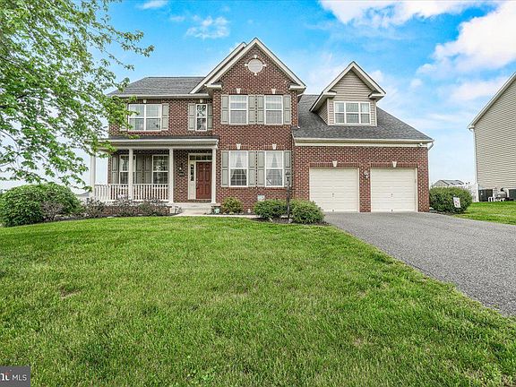 Welcome to this beautifully maintained 4-bedroom, 2.5-bath home with a two-car garage, nestled in the sought-after picturesque Elmwood Farm neighborhood. This stunning home features a stately brick front, a newer architectural shingle roof, and a recently updated furnace. Step outside to a composite deck with low-maintenance vinyl railings, overlooking a flat, fully fenced backyard nearly half an acre of usable space perfect for entertaining or simply relaxing. Inside, the main level features fresh paint, gleaming hardwood floors, a spacious pantry, and an oversized kitchen island paired with stainless steel appliances including double ovens ideal for both everyday living and hosting. The open floor plan flows seamlessly into the great room, where a cozy gas fireplace and soaring ceilings create a warm and inviting atmosphere. A versatile bonus room provides the perfect space for a home office, guest room, or play area, and a convenient half bath. Laundry is conveniently located on the main level. Upstairs, you'll find four generously sized bedrooms and two full bathrooms. The luxurious primary suite includes a double vanity, soaking tub, separate shower, and a large walk-in closet, along with two additional closets offering ample storage. The unfinished walkout basement presents endless potential, featuring abundant storage space and a rough-in for a full bathroom. Located just minutes from Elmwood Farm Bed & Breakfast (regularly hosts community events, holiday events and a summer concert), parks, C&O towpath, Downtown Hagerstown, restaurants, shopping, entertainment, and major commuter routes to Washington, D.C., Baltimore, and Northern Virginia, this home offers the best of comfort and convenience. Don't miss your chance to schedule your showing today!