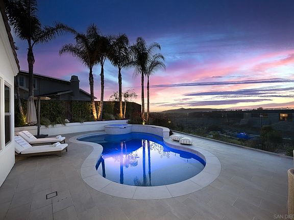 This single-story stunner is located in the sought-after Stonebridge Estates community of Scripps Ranch. It sits on a quiet cul-de-sac with no neighbors across the street and a wide-open canyon behind you. The backyard was built for entertaining, with a big BBQ island, pool, spa, and glass fence to enjoy your mountain and sunset views. The interior features travertine flooring, an updated kitchen, and a vast living space that flows flawlessly into your backyard. The location within the community offers easy access to Sycamore Canyon Park's playground and fields. Residents of this community love the easy access to nature and being in Poway Unified School District.