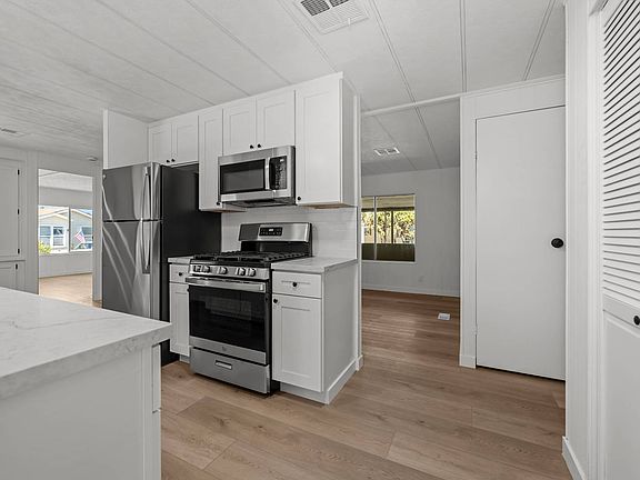 Welcome to your newly renovated 2-bedroom, 2-bath home located in the desirable Poway Royal Estates family community! This beautiful home features modern upgrades throughout, including granite countertops, stainless steel appliances, and vinyl flooring for a clean and contemporary look. Enjoy the flexibility of an enclosed bonus room, perfect for an office, playroom, or extra living space. Step outside to a spacious yard area, ideal for relaxing or entertaining. Poway Royal Estates is a highly desirable all-age manufactured home community nestled in the scenic hills of Poway, California. Known for its peaceful setting and pride of ownership, the neighborhood offers beautifully maintained streets, lush landscaping, and a welcoming atmosphere for residents of all ages. Conveniently located near shopping, dining, schools, and major freeways, it provides the perfect blend of tranquility and accessibility. Residents enjoy exceptional community amenities, including two clubhouses, two swimming pools, fitness center, tennis courts, playgrounds, RV storage, Horseshoe pits, kids' interactive play area, and greenbelts. Game room with billiards & darts, library, BBQ areas, Boat & RV parking available Car Wash and well-kept common areas. Pet friendly community. The community is part of the award-winning Poway Unified School District, making it an excellent choice for families seeking quality education and a strong sense of community. Outdoor enthusiasts love the proximity to Poway Community Park, Lake Poway, and local hiking favorites like Potato Chip Rock and Mount Woodson Trail. With its beautiful surroundings, family-friendly environment, and convenient location, Poway Royal Estates offers a rare combination of comfort, value, and California lifestyle. At In The Park Manufactured Home Sales - We don't just sell homes, we share the lifestyle! Our owners, staff, and agents live in manufactured home communities too, so we truly understand what makes them special. From start to finish, we're here to make your home buying journey smooth, simple, and stress-free. Call today to learn more or schedule your personal tour - your perfect home could be waiting for you! Each person applying for residency must complete an application and meet the community's requirements. All measurements are approximate, and lot lease amounts are estimated and subject to change. We can help with the financing process to help make your dream home a reality. Se Habla Español - Chúng tôi nói tiếng Việt - We're here to help in English, Spanish, or Vietnamese!