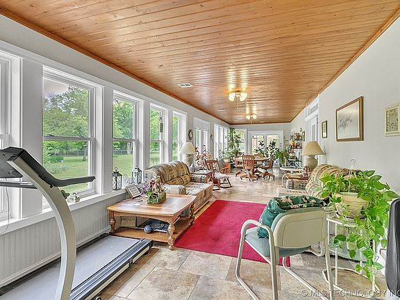 This beautiful spacious home is located approximately 6 miles W of Inola & 2 miles S of Hwy 412 - just blocks from the new Riverbend Arena & Event Center! You won't have any issues entertaining guests or having space for family or friends since this huge home boasts a large open kitchen/dining area, an extremely large living room with a gorgeous wood burning fireplace & 3 HUGE master suites with large full baths in each. The level 2 W bedroom ensuite even includes a kitchenette (w/microwave & small refrigerator) and all suites have large closets! The Level 2 E master suites has an adjacent media room that has potential for many uses. One ensuite has a spa tub to relax and unwind after a long day. Enjoy your morning coffee and breakfast while watching the birds from the gorgeous sunroom! There is potential for the level one bedroom to easily become a two-bedroom area (approx. 20x13 - sample drawings attached.) This property has plenty of room for outdoor activities in the fenced in backyard, as well as storage and workspace both in the large attached garage and/or detached shop! This is a highly energy efficient home so you can look forward to lower utilities (see attached info sheet.) If you are looking for the perfect country getaway, this one may be for you!