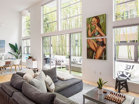Stunning Architectural Modern 2-story Loft style home in the Marina Arts District of Silicon Beach. This dramatic living space has tall windows and 16 ft. ceilings opening to a huge 300 sq.ft. private patio perfect for indoor/outdoor entertaining. Hardwood floors are featured throughout. The Italian designed kitchen with white Caesarstone counters and a moveable island adds to the options for this creative great room. Additionally, there is a bedroom and/or office with full bath on the first floor. Upstairs the Master Bedroom offers 2 closets, full bath, and an open den/office area. Laundry in unit, a personal storage closet, and secured parking for 2 cars. This small serene 16 unit security building has low HOA dues which include hot water. Enjoy the Coastal Lifestyle in this unique loft with minutes to the beach, Abbot Kinney, restaurants, shops, movies and more.