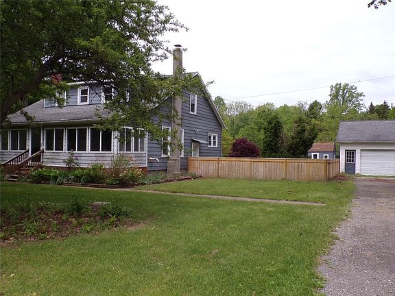 Situated on Nearly 3 1/2 Acres this 2000+ sq. ft. Home Offers Spacious Sun Room stretching across the Entire Front of Home, Large Living Room with Corn Pellet Stove. Dining Room Open to Large Applianced Kitchen with Lots of Cabinets plus Sliding Door to back Deck with Pool Access. 4 Bedrooms, 2 on 1st Floor with Updated Bath & 2 Large Bedrooms on 2nd Floor. Hardwood Floors Throughout. Lower Level Offers Additional 1000+ sg, ft. Game Room with Built-ins and Wood Stove to supplement Heat Cost. Updates include Windows, Septic System, Newer Flooring in Lower Level. Fenced Entire Yard. Beautiful Backyard Park like Setting with Many Trees. Also 2 Story Bunkhouse/Clubhouse or Storage Plus Accessible Water Spicket & Electric Line in yard. Detached 2+ Garage with Electric and Mechanics Car Lift. NEW METAL ROOF to be installed at Sellers expense prior to closing.