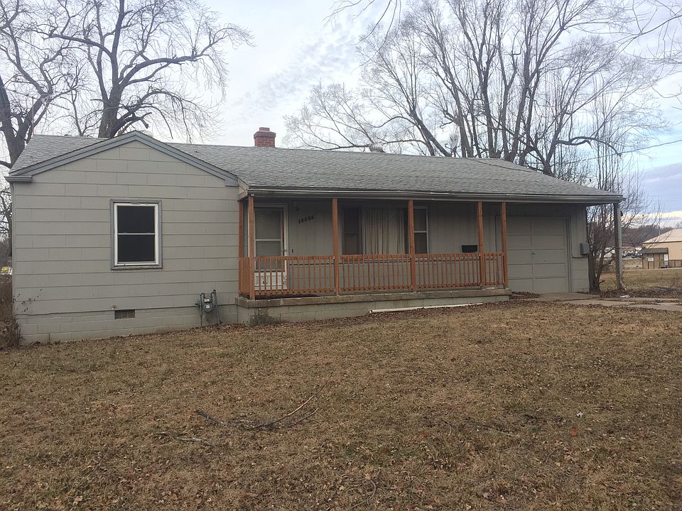 This home has beautiful hardwood floors. Very large open kitchen with tile floors, ample cabinet and counter space with a pantry closet as well, just off of the kitchen access to the back yard. The garage has been converted to a large family room, or could also be used as a large bedroom, has large closet with built-in storage. utility area with full size washer/dryer connections and more built-in storage shelves 2 full bedrooms with ample closet space nicely updated bath with built-in linen shelving. Great off-street parking space Just off Of Hwy 71 and Main St. Available Now! 1 month security deposit small pet negotiable contact our leasing dept. for more info 913-777-8901 12 month lease