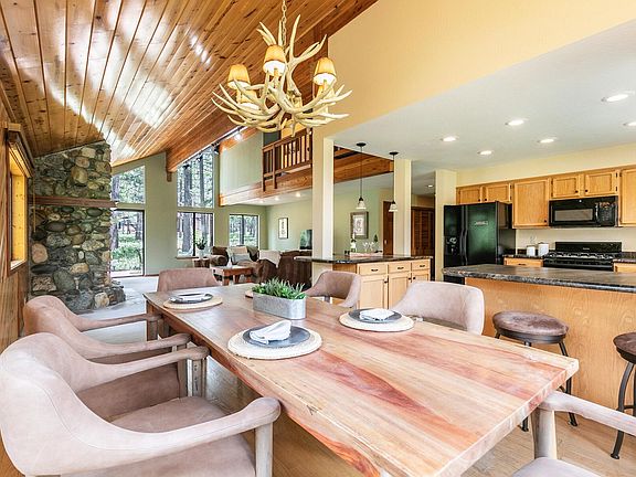 Wow! Experience this Grand Ski Cabin located within the heart of Tahoe Donner's amenities. The location is prime!!! Close proximity to Trout Creek Center, The Lodge and golf course. This home has been lovingly taken care of and is large enough for friends and family to enjoy with 2550 SF of living space and a desirable floor plan. The open floor plan provides great flow, natural light and vaulted ceilings. Featuring the primary bedroom on the main level with direct outdoor access to the rear deck and hot tub. Upstairs leads to 3 additional bedrooms + office, 1.5 bathrooms and a spacious loft with pool table. The 600 SF back deck complete with hot tub and privacy screening provides the perfect way to end a day exploring Tahoe. Situated on a near level lot with great sun exposure, a south facing driveway and a two car garage with room for the Tahoe toys. If you know the Tahoe Donner market, you'll appreciate that this is an incredible find!