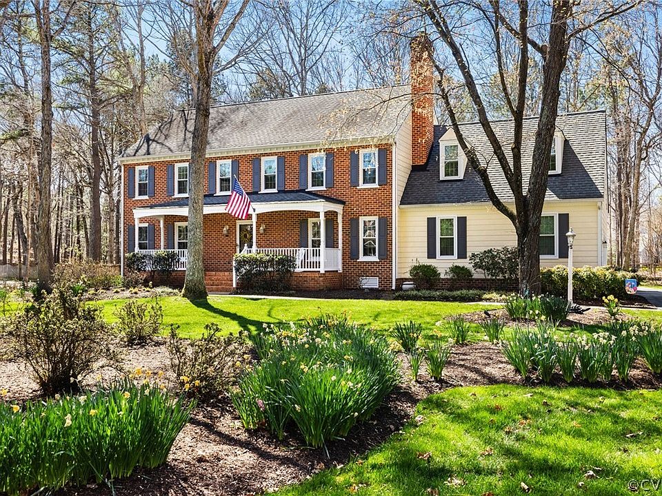 This Midlothian home on the Robious Road corridor is situated on a beautiful acre park-like lot! Located in the Powderham neighborhood, this colonial has been well maintained by the original owners. Five bedrooms all on the second level with a conveniently located laundry room. Dual stairways. The fifth bedroom could make a great bonus room/rec room and is accessed by the rear steps & upstairs hallway. Beautiful hardwood floors throughout the entire first floor have been refinished. Spacious formal rooms and sunroom overlooking the private rear yard. Side loading two car garage. The family room has a brick gas fireplace and ceiling beams. The eat-in kitchen was renovated about 10 years ago. Detached storage shed conveys. Walk-up attic. Easy access to the James River, Robious Landing Park, Rt 288, public playground, shopping and restaurants. Independence Golf Course is very close as well. Location! Location! Location!