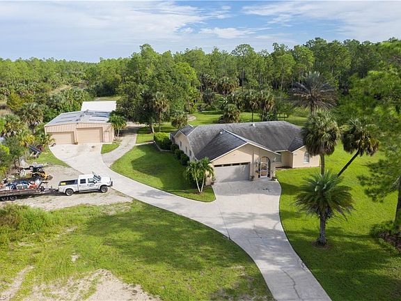 This 5-acre property allows you to live, work and play, all from the comfort of home! The open floor plan is great for entertaining, with family, dining and formal living, all balanced around a big galley kitchen. The primary suite has high vaulted ceilings, and lots of natural light with sliding glass doors to screened lanai. Primary bath boasts a walk in closet and a generous amount of space. On the guest side you’ll find two bedrooms, a guest bath with duel sinks and a tub shower combo. An additional bonus room with sliding glass door to pool area could easily be converted into a 4th bedroom. The outdoor space offers the best of both, with an attached screened lanai to relax and an open deck around the salt water pool, perfect for lounging in the SWFL sun. The 40 x 60 metal building has 2 roll up doors (10ft high & 8ft high) and an air-conditioned office with separate entrance. It offers the perfect set up for a home business, and the large driveway to shop is big enough to maneuver long trailers. If you’re tired of paying high board and fighting traffic to see your horse, now you can stable at home! The center isle barn with covered wash rack, tack room and attached turnout will keep your 4 legged friends closer to you, and comfortable. Over $40,000 went into the footing in the 70x200 lighted arena. Multiple pastures offer plenty of turnout. An ideal location nestled between Randal and the new Vanderbilt Beach Ext, mean your access to beaches and shopping will be easier than ever, in the very near future. Only 3 miles to the nearest Publix shopping center and fire station.