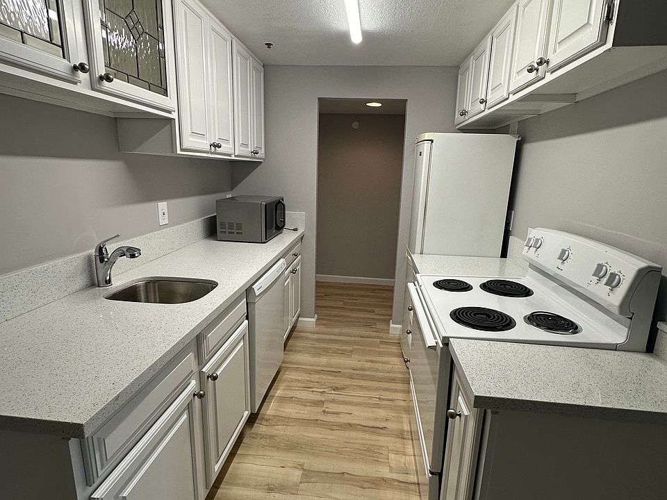 Spacious 1 bedroom condo in the Downtown area. Quiet street in very walkable neighborhood. One garage parking space. *newly installed washer/dryer in unit* Newly painted and upgraded kitchen. High ceilings and walk in closet. Secured building with full amenities, including gated parking. BBQ deck, sauna, steam room, gym and trash chute included. Tenant is responsible for gas/electric.