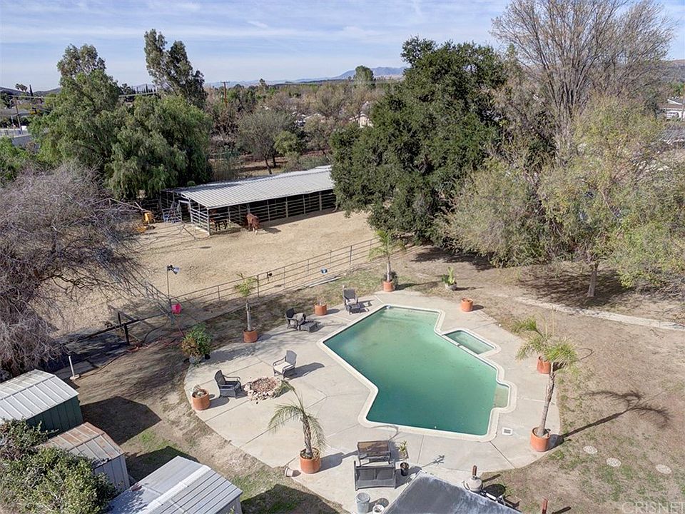 4 + 2 Ranch home sits on just under 3/4 of an acre of flat usable land with entrance from the front and rear for all your toys. This is horse property and includes a barn, hot walker and riding arena. In addition you are located a 5 minute walk from the public Simi Valley Equestrian center that offers events throughout the year and can be used daily for your equestrian needs. The home also has a pool, spa and fire pit. Several sheds are on the property for additional storage and the home has a 2 car garage. Located in the quiet part of Simi Valley near rolling hills which are accessible with your horse, you will find endless possibilities here. The home is bright, open and spacious. Opportunity awaits as you have a canvas to make this property your own private oasis.