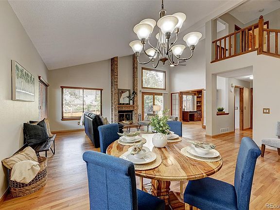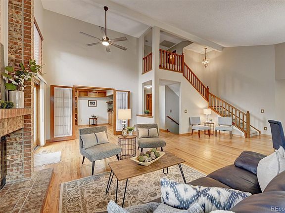 Welcome to your new home at 1333 Briar Circle in Highlands Ranch, in the charming Northridge neighborhood. This residence offers a bright, inviting living space with an open-concept design. As you step inside, you'll be greeted by soaring vaulted ceilings that accentuate the elegance of the dining room and living room. Oak hardwood floors and abundant natural light create a warm and welcoming atmosphere, complemented by a cozy gas fireplace. The spacious kitchen includes numerous alderwood custom cabinets, an eat-in area, and a kitchen refrigerator. Adjacent to the living room, discover a double-door office featuring built-in shelves and a convenient wet bar, providing a versatile space for work or relaxation. The main level boasts a full bathroom and a laundry room with a washer and dryer for convenience. Ascend the impressive, tall-valued staircase leading you to the upper level. You'll have a generously sized, vaulted primary bedroom here. The primary bath features a private shower and a double sink vanity leading into a large walk-in closet, offering ample storage and organization space. A second bedroom awaits, offering mountain views and plenty of storage with built-in shelves and closets. You will find a full-size bathroom on the 2nd level. The stairs and upstairs have brand-new carpet. Downstairs, the basement beckons with a generously sized family room, accompanied by another wet bar, a bathroom, and an additional bedroom. The basement is adorned with luxurious vinyl wood flooring, enhancing the overall appeal and comfort. Escape to the outdoors and savor your summer with stamped concrete patio and landscaped backyard designed with low maintenance in mind—no more yard mowing to worry about. This home boasts a perfect blend of functionality, style, and comfort, creating an ideal living space. Take advantage of the opportunity to make it yours and experience Highlands Ranch's Northridge lifestyle.