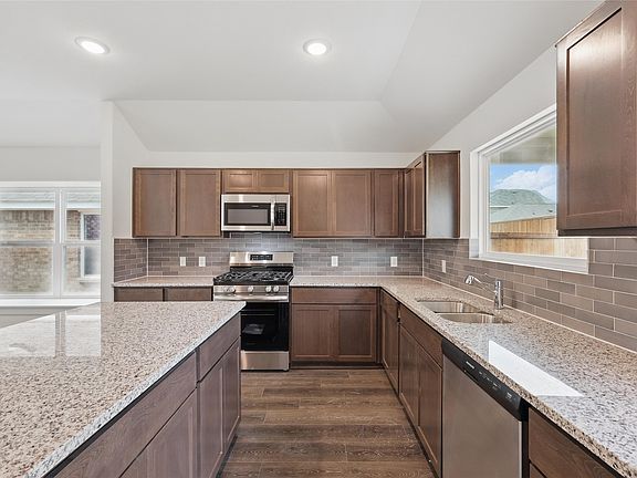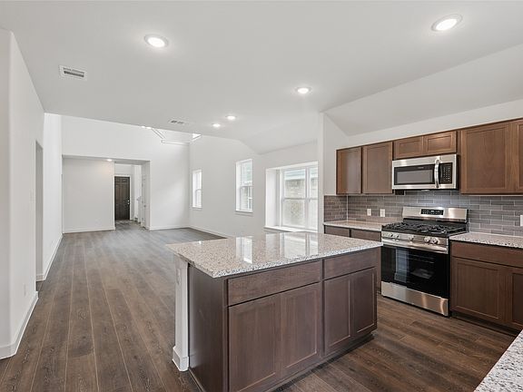 Discover your dream home in this stunning new construction two-story Brightland residence! Experience the perfect blend of comfort and style in the Meridian Plan, which offers an impressive 2,093 square feet of living space. As you enter, you'll be greeted by a bright, open-concept kitchen designed for both functionality and elegance, featuring abundant storage and countertop space, stainless steel appliances, a large island for gatherings, a pantry, and luxurious granite countertops. Retreat to the exclusive owner's suite, thoughtfully positioned away from the great room, providing a serene escape. This private oasis includes a spa-like ensuite with a dual sink vanity, a spacious shower, and a generous closet. Upstairs, you'll find two additional well-appointed bedrooms and a bathroom, along with a versatile loft area that’s perfect for family activities or hosting friends. Take advantage of the exceptional comfort and sophisticated style this beautiful new home offers. Surround yourself with the serene beauty of one of Forney's finest neighborhoods, Walden Pond. This vibrant community features lush green spaces, well-maintained parks, and scenic walking and biking trails that meander throughout, providing peaceful surroundings and a great opportunity to meet new neighbors while connecting with nature. Experience the ideal balance of modern amenities and a welcoming community lifestyle today!