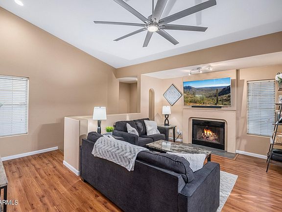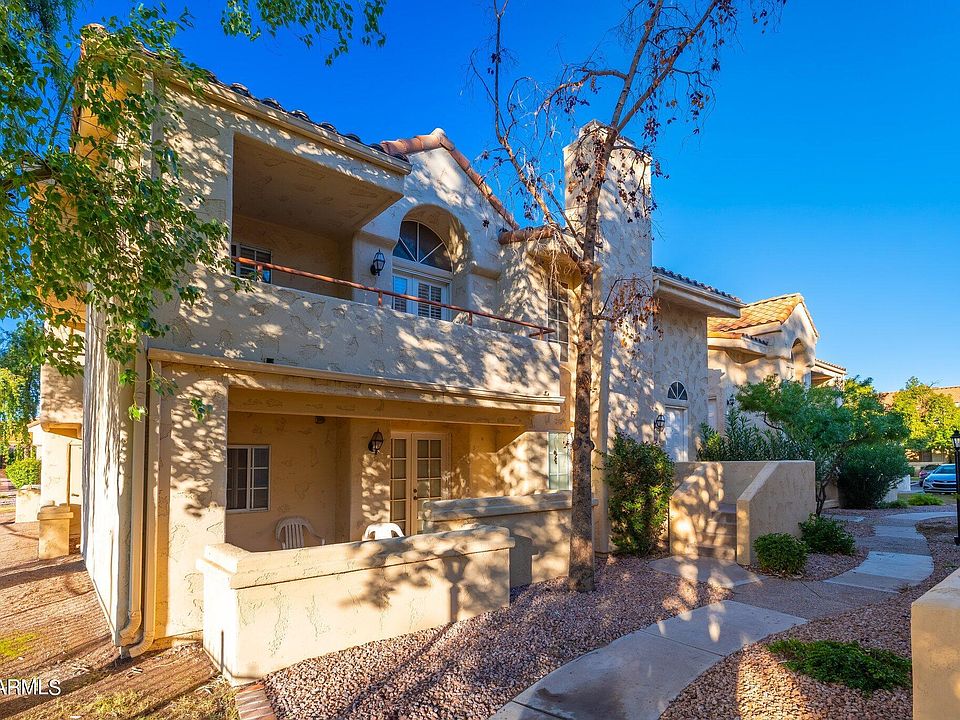 This fabulous 2 bedroom, 2 bath condo is centrally located in a nice gated community just minutes from the 51 freeway, and Piestewa Peak mountain range. This home features a spacious great room with vaulted ceilings, laminate flooring, fireplace, and opens to a wonderful patio area with partial mountain views.  The gorgeous kitchen has quartz counter tops, tile back splash, big pantry, tile floors, white cabinets, and stainless steel appliances. The master suite has it's own private balcony, and beautiful granite counters are featured in both bathrooms.