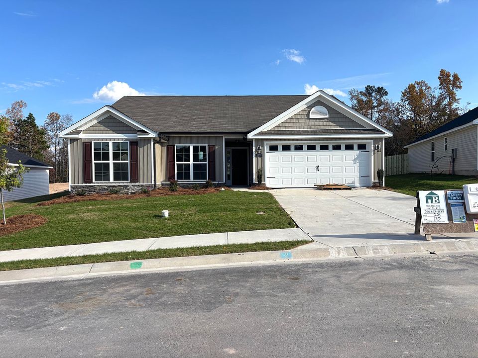 The designer kitchen is built to impress, featuring a sleek in-sink island, granite countertops, a full tile backsplash, modern cabinetry, stainless steel appliances, and a walk-in pantry. Need more space? There's also an oversized power pantry just off the kitchen—ideal for keeping everything organized and within reach. The split floorplan ensures maximum privacy, with the owner's suite tucked away as a true retreat. This serene space features a spacious walk-in closet and a luxurious ensuite bath, complete with dual vanity sinks, a relaxing garden tub, a glass-enclosed shower, and a private water closet/toilet room. On the opposite side of the home, the additional bedrooms are generously sized, each offering ample closet space and an abundance of natural light—perfect for family, guests, or a home office. The homes tech-savvy touches include a smart home security system, automatic sprinklers, a beautifully landscaped yard and a fenced-in backyard. Outside your door, enjoy access to resort-style amenities with two community pools, sidewalks, and streetlights—perfect for those peaceful evening walks or relaxing outside your home. All of this within 2 miles from Fort Gordon and minutes from I-20, I-520, many shopping destinations, and great restaurants. This home blends style, space, and convenience—an opportunity you won't want to miss! Home to be completed end of November 2025.