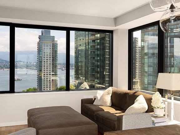 Available January 1 2026 Welcome to this bright and spacious 2-bedroom + den, 2-bathroom apartment in the heart of Coal Harbour. This unit offers stunning views of Stanley Park and the Harbour, bringing the natural beauty of Vancouver right to your living room. The open-concept layout features large windows, a well-appointed kitchen, and a versatile den perfect for a home office. Both bedrooms are generously sized, with the primary offering its own ensuite for added privacy and convenience. The building was converted into residential condos in 2006 by Anthem Properties Group Ltd. With such an iconic building comes its signature structural style. You will have easy access to downtown dining, shopping, and transit. QUBE offers secure underground parking, multiple high-speed elevators, open-concept layouts, high-end finishes and high ceilings! One parking spot included with this rental.