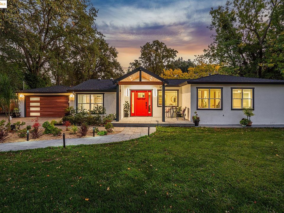 Nestled in one of Walnut Creek’s most desirable neighborhoods—just moments from downtown, top-rated schools, and easy freeway access—this single-level home blends modern design, comfort, and craftsmanship. White oak engineered floors flow through an open-concept layout connecting the living, dining, and entertaining areas. The chef’s kitchen features designer cabinetry, premium finishes, and Monogram appliances—ideal for everyday living or elegant gatherings. The primary suite is a serene retreat with French doors to the backyard and a spa-inspired bath with dual vanities and a stunning wet room. With four spacious bedrooms, a dedicated office, and a two-car garage, the home combines luxury and livability—with additional driveway parking for an RV, boat, or extra vehicles. Set on a half-acre resort-style lot, the outdoor space is built for entertaining, featuring a bocce court, a new guest house with a kitchenette and spacious bathroom, an outdoor kitchen and bar area under a louvered pergola, plus a charming playhouse or studio. Every detail reflects timeless California elegance—offering the ultimate in modern living and location.