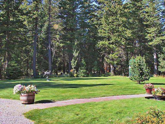 Beautiful ranch style home with master bedroom/bath suite, large living room, parlor, kitchen, dining room, laundry room and 1/2 bath on main floor with deck outside of master bedroom and dining room. Loft above living room is comfortable carpeted with window view out front and rear of home. Living room and parlor have wood floors, bedroom is carpeted and kitchen, dining room and laundry are slate tile. Ceilings are vaulted in master bedroom, dining/kitchen and living room. The entire lower level is carpeted and nicely designed with 10' ceilings, adding to its spacious open warmth. Each if the 648 sq. ft. bedrooms has a walk-in closet containing built-in dresser, shelves and wardrobe hangers. Each bedroom also includes built-in desk and drawers and french doors leading to the aggregate patio with lovely views of forest in back of the home. Family/media room in lower level is wired for speakers. A freestanding propane stove provides extra heat and large windows offer forest views. A convenience bar with refrigerator, ice maker, wine rack and cupboard space is located across from a full bathroom with shower/tub. The utility closed is conveniently located in the hall containing double water heaters and Water Furnace Heat Pump. The entire home is very well insulated, providing welcome energy savings in winter. A 1,000 gallon, underground propane tank is located next to the home and usually only needs to be refilled once a year. The large 3-car garage is also insulated and heated with radiant heat. Two large stationary windows are located on each side of the garage providing welcome light throughout the year. The covered horse shelter and attached hay storage are located in the back of the house. The storage area has a concrete floor, sliding doors front and rear and skylights overhead to allow extra light inside all year. Shelving is provided along one side of the indoor facility overhead. Water and electricity are included.