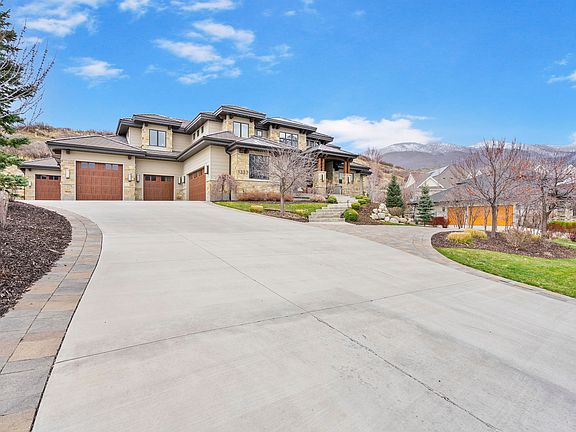 This home appeals to your sense of vision. It is magnificent from the front curb, offers beautiful views of Utah valley and mountain ranges from the front of the home, and offers impressive mountain views across natural public open spaces to the rear of the home. Come view this beautiful custom designed Parade of Home property on the east side of Alpine with high ceilings and loaded with upgrades, including Okios, a crushed granite from Italy, wood cased floor to ceiling windows, large walk-in pantry(with sink, butcher block counters, Scotsman ice maker and beverage cooler), steam room shower, hidden playroom, large gym with plenty of natural light, Costco door (from garage to pantry), whole house steam humidifiers and a built in safe room. There is a Reionator Pro RX12 water filtration system. Construction includes steel beams throughout this very solid feeling home. The master bedroom is on the main floor, with an attached laundry room and spacious walk-in closet with organizers. Much of the main level includes a new (2024)engineered wood floor of European white oak sourced from France. There are also two oversized custom fireplaces, a substantive floating oak staircase, a dream kitchen with high ceiling, large space to work and gather, great views, Thermador Professional range and wall oven, garbage compactor, two dishwashers and tons of storage space. The fully functional basement unit (with bedroom, kitchen and laundry) includes a private entrance, while still being connected to the main house. There is also a large family room, a gym and music/recording room with light truss, custom wiring and double sheet rock. Plenty of storage space, including cold storage in the finished safe room. Upstairs there are two bedrooms, connected by a jack-and-jill bathroom. The "cousins" bedroom has five beds with individual lights and charging stations. Upstairs also includes a secret playroom, a large family room with covered patio and an extra wide hall way. Home includes an inviting circular driveway perfect for quick stops by friends and family. The private backyard has two patios, including one with a covered barbecue area with covered seating and mountain views. Both patios have gas fireplaces. A small water feature separates the two patios and offers soothing sounds through the summer. A Bullfrog spa hot tub and in ground trampoline round out the multiple entertainment options. The terraces in the backyard were created with large natural stone. There is access to an extensive trail system from the backyard or nearby parking areas. There is extensive in garage and outdoor parking: main garage is heated with one extra large bay (34' long and 11' door) and holds 4-5 cars; detached garage large enough for a boat (27' long and 12' door) and other toys. Both garages have 220v power outlets. Bring all offers.