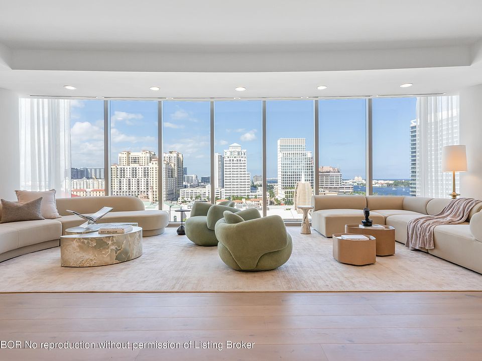 Discover this exquisite, move-in ready 4-bedroom, 4½-bath residence at the prestigious Forte on Flagler, a 41-unit boutique, luxury waterfront building. A private elevator opens directly into your spacious foyer that flows into a bright & open floor plan. Floor-to-ceiling glass frames with panoramic water views. Enjoy a gourmet kitchen with high-end appliances & custom cabinetry, expansive living & dining zones ideal for entertaining, & an oversized terrace that merges indoor elegance with outdoor ease. The primary suite features his and hers bath, a spa-style bath & generous walk-in closet, while three additional bedrooms & baths offer comfort & privacy for guests. Spectacular 5-star amenities curated for discerning buyers who value privacy, prestige & the ultimate waterfront lifestyle.