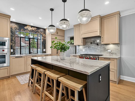 Beautifully reimagined in 2023, this custom Hemphill-designed home blends modern elegance with timeless craftsmanship. This sophisticated Winnetka home is completely transformed, including new electrical and plumbing, an updated floor plan, bay windows, and new exterior doors, while maintaining the charm and character of original plaster crown moldings and Hemphill's signature wrought-iron staircase. Every space exudes calm, understated luxury. The chef's kitchen features quartzite counters, custom cabinetry, and Wolf/Sub-Zero appliances, flowing seamlessly into the light-filled family room framed by black-trimmed windows and natural wood tones. The living and dining spaces are anchored by a stunning fireplace and layered lighting that set the tone for relaxed sophistication. Upstairs, the serene primary suite has a luxurious spa-inspired bath, with a marble-slab shower, custom storage, and a private balcony. Each bathroom offers its own distinct character, from the dramatic powder room to the sleek secondary baths. All full baths feature heated floors for added comfort. The lower level is designed to feel like an extension of the main living space and features a refined theater lounge with a drop-down projector and custom wood-burning fireplace. 2-car attached garage completes this rare turnkey home near top schools, Hubbard Woods, downtown Winnetka shops and restaurants, metra, plenty of parks and Tower beach access. Schedule your private tour today and experience modern Winnetka living at its finest.