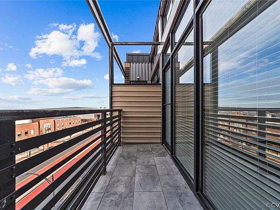 This 2 bed 2 bath condo features secured garage parking with arguably the best parking spot in the garage. The top floor/end unit location offers quiet and privacy with no one above you and only one shared wall to the side. The top floor also offers extra ceiling height (15 ft in living room) and an additional row of windows for a brighter, loftier space. The layout is ideal for two roommates with the two bedroom and two full baths. This unit offers all the modern finishes you could want including newer wood floors, sleek kitchen with granite counters and stainless appliances, tiled luxury bathrooms, walk in closet. The generous balcony overlooks the city with one of the best views of Richmond events such as the Marathon. Association fee includes water, sewer, trash, basic cable and internet - all you pay is electricity.