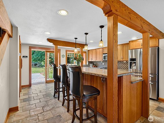 Old-World Charm Meets Modern Living! This stunning barn-to-home conversion showcases solid reclaimed fir millwork throughout, offering timeless charm. Nestled on just under 1 acre within city limits, this 3-bedroom, 2.25-bath home, updated with new windows and fresh paint inside and out. Additional 3rd story ADU features its own kitchen, ¾ bath, and AC —ideal for guests, rental income, or a private home office. Enjoy the backyard with a spacious patio, large lush lawn, garden area and a fenced dog run. A 28’ x 36’ insulated shop with loft, ideal for workshop, gym, RV / boat storage, or a business. Full RV hook-up. Zoned to allow two additional homes or ADUs, buyer to verify. 2 minutes to the soccer fields & 8 minutes to Bellingham.