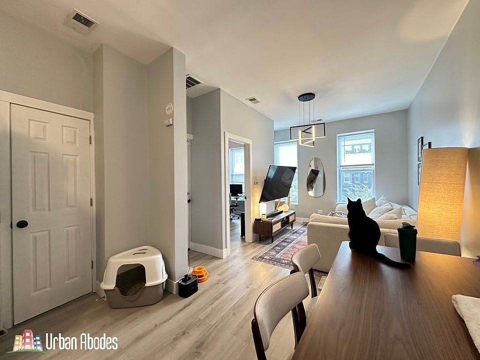 Incredible two bedroom, one bathroom in Noble Square features brand new kitchen with granite countertops, stainless steel appliances, dishwasher, large combination living and dining rooms, spacious bedrooms, amazing closet space, brand new bathroom, central heat and air, in unit laundry, shared yard space, and pets are welcome. Close to Eckhart Park!