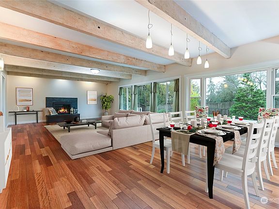 [LIVES PRIVATE] [MULTI=GENERATIONAL] Nestled in the heart of the picturesque Pacific Northwest, mid-century classic home offers the perfect blend of timeless design and modern luxury. Boasting three spacious ensuite bedrooms, 2 additional bedrooms, 2 kitchens, 2 laundry laundry; this property is ideal for multi-generational living, ensuring both comfort and privacy for everyone under one roof. . Quality upgrades and materials; all graced with artful touches throughout, main chef inspired kitchen with unbelievable design. Despite its proximity to the bustling city of Seattle, this residence provides a private sanctuary,shielded from all with the courtyard & the lush landscape. Attached carport fits 3 vehicles easily, finished outbuilding.