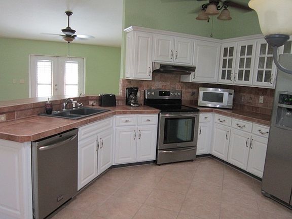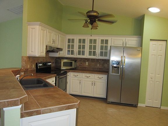 Absolutely beautiful, energy efficient, 3/2 split situated on almost an acre (.86), shade treed and fenced lot. Family room with double entry French doors lead out to the solar heated, salt water pool under an additional 1008 square feet screen enclosure. Eat in kitchen and bar area, newer stainless steel appliances. There's granite, tile and Corian counters and windows are complete with plantation shutters. Seller added solar tubes, exterior stonework, sprinkler, security system, new windows just to name just a few of the upgrades. Cozy third bedroom would make a great home office. Adorably complete and move in ready.