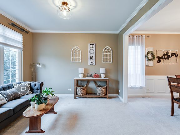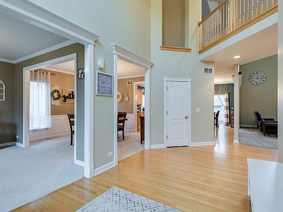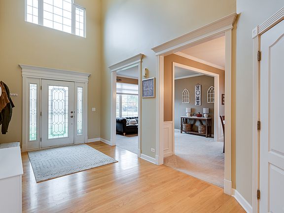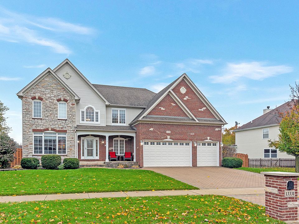 This home will have you at "Hello" - Great curb appeal, professional landscaping, beautiful stone & brick exterior. A grand foyer welcomes you in, open floor plan, wonderful natural light. The dramatic 2-Story family room features custom millwork & a beautiful see-through fireplace leading to updated sunroom with bamboo floors. The gourmet eat-in kitchen offers stainless steel appliances, a grande island w/ seating, granite counters, a wine bar & a pantry. Retreat to your master suite featuring tray ceilings, an office nook w/ built-in shelving, huge walk-in closet & luxury bath. The basement is perfect for entertaining featuring a wet bar, full bath, home gym, bonus room, and plenty of storage. Enjoy summer BBQs on your brick paver patio in your fully fenced, private backyard. Home also features zoned heating & AC, oversized 3 car garage, hardwood flooring & custom millwork. Plainfield North schools. Hurry in this one won't last!