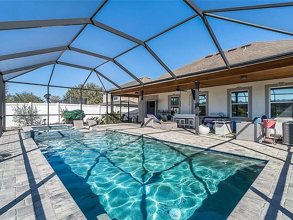 Pool Home Opportunity awaits you today. This exquisite property offers a perfect blend of comfort and convenience. As you step inside, you are greeted by the grandeur of high ceilings, creating an open and spacious atmosphere throughout the downstairs area. The entry leads you into a captivating great room adorned with laminate floors that extend seamlessly throughout the house, while the bathrooms boast tile flooring. Enjoy the abundance of natural light streaming through double-pane windows, creating a bright and inviting ambiance. The kitchen is a culinary haven, featuring double ovens, Corian countertops, and a large pantry, providing both functionality and style. Downstairs, a convenient half bath is also available for guests. The master bedroom suite, strategically located downstairs, offers a private retreat with walk-in closets and a spacious shower. Upstairs, discover three bedrooms, a full bathroom, and a spacious loft area with endless possibilities. For those who love outdoor living, the double doors open to the backyard oasis. This home features a saltwater pool installed in 2021, a propane heater, a spa, and a vinyl fence ensuring privacy. Two 300-pound propane tanks support the Generac whole-house generator and pool heater. Additional features include a water heater installed in 2019, two A/C units, a water softener, and a reverse osmosis system. The exterior of the home features decorative stonework, gutters, and recently updated paint, all of which enhance its curb appeal. The property is surrounded by lush landscaping, including banana trees, kumquat, guava, key limes, olive tree, and ruby red grapefruit. For those pet lovers, underneath the staircase can be their next home to rest or can be used for additional storage. Conveniently located, this home offers proximity to the local county fair across the street, minutes away from public schools, and a sports complex just around the corner. Don't miss the opportunity to make this exceptional residence your own!