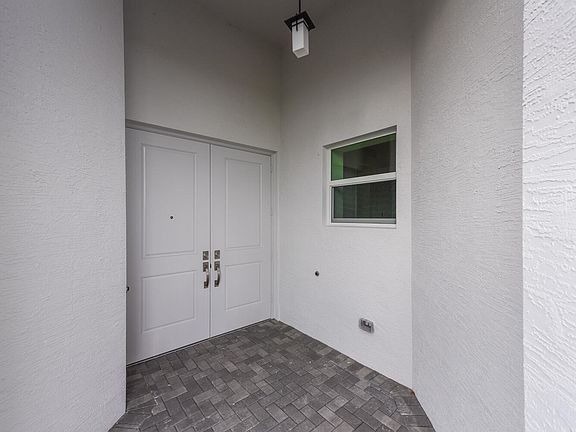 This brand new, never lived in Palazzo model with a thoughtful set of options and upgrades, is the perfect backdrop to bring your furniture and personal touches and move right in. Includes 4 bedrooms, 2.5 baths, on a corner lot. Light neutral colors and beautiful tile flooring throughout. Gourmet kitchen includes upgraded cabinets, stunning quartz countertops, tile backsplash, and stainless steel appliances. Luxury master bath features walk-in shower with bench, dual sinks and a soaker tub. Enjoy your morning coffee in your screened in lanai and gorgeous sunsets from your west facing patio with extended pavers. Enjoy all that Valencia Grove offers, including the Sports & Racquet Club, Art & Culture Center, Clubhouse with on-site restaurant, pickle ball, bocce, tennis, and multiple pools.