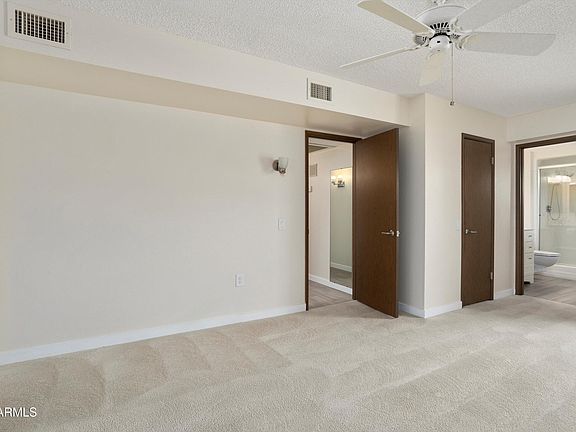 Spacious 1,401 sq ft garden apartment featuring a beautifully remodeled kitchen with walls removed for an open, airy feel, newer appliances, and updated bathrooms. Enjoy fresh 2024 windows, newer tile and carpet flooring, and a 2018 updated HVAC system. The primary suite offers 2 large built-in armoires and a walk-in closet. Second bedroom is split and features walk-in closet. Relax on the covered back patio overlooking the enclosed courtyard . Replacement cloth & poles for extra shade provided to buyer . Nestled in the nicely landscaped Quail apartment complex, this home includes a 1.5-car garage, additional parking, and a water softener system. HOA covers roof (2025/26), water/sewer, pest control, garbage, blanket ins. and ext. maint.. Professionally cleaned, it is move in ready.