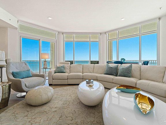 Welcome to this 5 BEDROOM condo at Perdido Key's most premier Gulf Front condominium with unparalleled Gulf views, situated alongside the expansive 5.5 mile long Gulf Islands National Seashore, offering the best location for opportunities of beachfront relaxation & exploration. With only 64 Residence at Vista Del Mar, you have the rare opportunity to enjoy secluded beaches & impressive interiors. The fully FURNISHED, spacious 5-bedroom, 5.5-bath residence offers a contemporary open floor plan to enjoy perfect picturesque views from every angle with floor to ceiling glass. The large, deep balcony provides the best spot for outdoor entertaining, dolphin watching & sunsets, and it features a BRAND NEW gas grill installed 6/24/24. Let the elegant flooring guide you through this beach abode, adorned with coastal décor, stunning art & art-deco light fixtures in each room & filled with natural light. Luxury countertops & high-quality cabinetry enhance the aesthetics of this chic condo. The gourmet kitchen offers a bright, modern design, with beautiful backsplash, & state-of-the-art appliances including a Wolf range & hood & Sub-Zero refrigerator. A separate dining area & wet bar complement the space, equipped with sink, wine fridge & ice maker. Each bedroom is its own sanctuary, & the primary bedroom with en suite is its own lavish living experience – providing balcony access & adorned with an expansive closet, soaking tub & separate shower. The secured, gated community has assigned covered parking & assigned climate-controlled storage space plus storage closet on balcony. The grand lobby features multiple seating areas with views of the Gulf of Mexico. A club room with bar, pool tables, & televisions enhances the complex with extra entertainment options. You will be sure to appreciate the best of amenities to include an indoor heated pool, owners' health club with fully equipped fitness room, massage treatments rooms, kid’s club & much more, its the best of the beach!