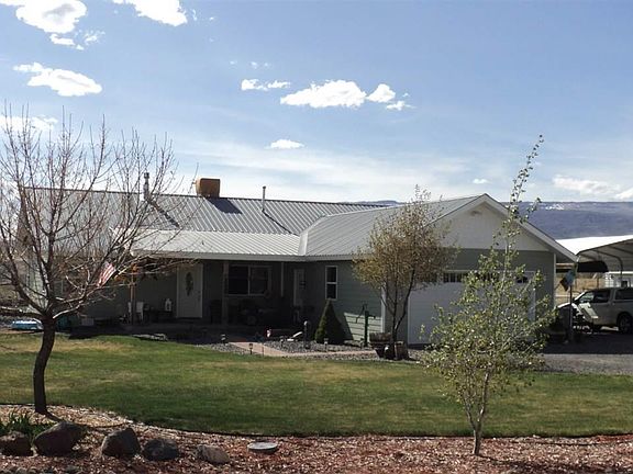 Enjoy the unobstructed views of the Grand Mesa from the covered back patio or the sunrise in the east from the covered front porch of this well-maintained home. Conveniently located west of Eckert for commuting to Cedaredge or Delta. Home has brand new carpet in living room and office, gas stove in living room for those cozy winter evenings. The home has an evaporative cooler with drops in each room for even comfort throughout. A great room in the middle between the master suite and the two extra bedrooms with a separate office make a great floor plan. The two extra bedrooms have a "Jack 'N Jill" bath opening off of each bedroom, and the master suite features a completely new bathroom with new quartz countertop, new cabinets and tile floor, and a spacious walk-in closet. There is even a 1/2 bath for guests. A new washer and dryer, faux wood blinds and updated appliances, plus a nice pantry cabinet unit in the kitchen complete this home. The attached two-car garage is nicely finished, taped, textured and painted and has a brand new garage door with auto openers. There is also a large carport for parking larger toys. Chain-link fenced back yard is nicely landscaped with lawn, attractive trees and shrubs and watered by automatic sprinkler system. This home is ready for you!! Come take a look.