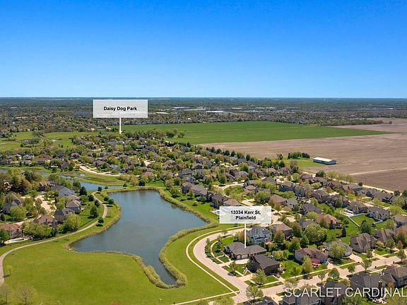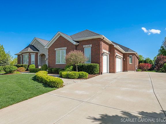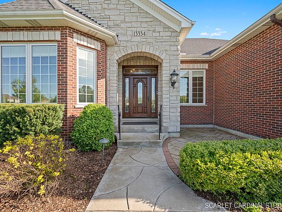 Nestled within the prestigious Dunmoor Estates, this exquisite one-of-a-kind custom ranch-style residence, crafted by Oak Hill Builders, stands as a testament to luxury living. Its captivating blend of all brick and stone exterior exudes timeless elegance, setting the stage for a truly remarkable home. With four bedrooms and three and a half bathrooms, this residence epitomizes spaciousness and comfort, showcasing meticulous attention to detail throughout, from the full finished basement to the 3 1/2 car heated garage. Step inside to discover an open floor plan seamlessly integrating the living spaces. The gourmet kitchen, the heart of the home, is a haven for culinary enthusiasts. Featuring Brakur custom cabinetry with custom built-ins and pull-out drawers, granite counters, a Center Island, breakfast bar, eat-in area, walk-in pantry, and top-of-the-line Thermador appliances including a dual oven, cooktop, and dishwasher, it epitomizes sophistication. Entertain guests effortlessly in the expansive family room, adorned with soaring ceilings, a custom stone gas log fireplace, dual oversized skylights, surround sound, and 4" hardwood Oak flooring. Find serenity in the sunroom, boasting French doors and a slider leading to the brick paver patio, perfect for moments of relaxation. The master suite offers a private retreat, complete with a voluminous ceiling, a generous walk-in closet, and a luxurious ensuite bath with a whirlpool tub, separate shower, elegant lighting, and dual vanities. Additional highlights include a first-floor office/den, a dining room adorned with an elegant chandelier, wainscotting, and hardwood flooring, as well as a laundry room for added convenience. The deep pour basement offers a fourth bedroom, a full bathroom, huge recreation area, and ample storage space. This home boasts numerous upgrades, including 10' ceilings on the first floor, 4" hardwood floors throughout the first floor (Except Sunroom) , crown molding, columns, 8" baseboards, tankless hot water tank, high-efficiency furnace with UV light protection, central vacuum, inground lawn sprinklers, and upgraded Pella windows. Home is professionally landscaped with a front brick paver patio as well. With impeccable craftsmanship and unparalleled amenities, it epitomizes luxury living at its finest. Don't miss the opportunity to make this your dream home, conveniently located near District #202 schools and overlooking the tranquil pond and park.