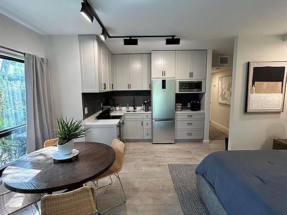 This one of a kind studio was recently renovated. It has a fully equipped kitchen with all utensils and a full size refridgerator. It also has custom lighting and sonos speakers. The Rent INCLUDES : Water, Electric and WiFI
