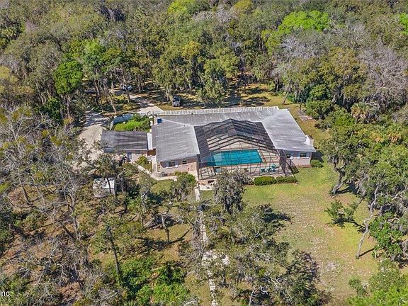 Venture down the long gravel driveway to a private enclave of three residences. 13335 is in the center nestled under mighty oak trees with undoubtably the very best view. Classic ranch style with detached 2 car garage. The structure is U shaped with a screened courtyard including a large pool & separate hot tub in the center. Open floor plan with vaulted and beamed ceilings, 2 fireplaces, and 6 sets of sliding glass doors open to the courtyard & pool to enjoy the breathtaking views. Two ensuite bedrooms, one at each end of the U Shape, one for the owners and one for guests. Three additional bedrooms share a large bath. Well-equipped kitchen, center island sink with incredible views. Private backyard to boat ramp & dock with 10k boat lift & 220 ft of tidal waterfront panoramic views.