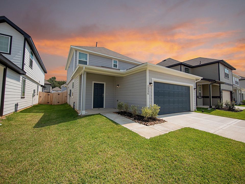 River's Edge is a coveted new construction community near The Woodlands in Conroe, Texas. The Woodland plan is a 2-story home that comes standard with 4 bedrooms, 2.5 baths, a flex room, and downstairs primary suite with an upstairs game room. All bedrooms come equipped with walk-in closets. Upgrades include - Granite countertops in primary bathroom, Granite countertops in secondary bathrooms, Sod front and back, Stainless steel appliances.