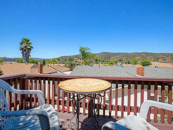 This 4 bedroom, 2 bath home has a bonus detached 5th bedroom (no closet & permits unknown) IN ADDITION TO the home's 1520sf for lots of space on a single level. Beautiful sunset views from deck, impeccable home, well maintained, new flooring, dual pane windows, vaulted ceilings, both bathrooms recently remodeled, Covered RV parking, Utility room off kitchen, quiet street. Brand new central AC, security system, breakfast bar in kitchen with newer granite countertops. Don't miss this fabulous home in Poway!