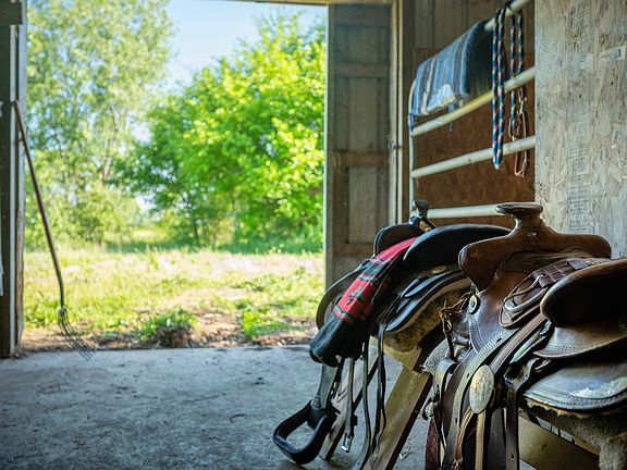 Introducing a charming 1,984 SF one-level ranch that blends country living with modern comforts. This well-landscaped property spans 2 acres and is ideal for the horse enthusiast or anyone looking for space. It offers a fenced 1.5 acre pasture, a 30' x 50' barn complete with 4 horse stalls, detached 2 car garage, and workshop. The home offers 3 bedrooms and 2 full baths arranged in a split floor plan that includes primary suite. In the kitchen, enjoy granite countertops, island, double ovens, stainless steel appliances, and brick stove surround that was repurposed from a brick schoolhouse. Crown moulding, built-in desk, and hardwood flooring add even more character to this exceptional property.