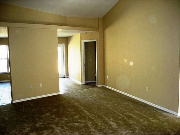 This newer four bed room home features an open floor plan. The living room has vaulted ceilings, carpet, plant shelves. The kitchen includes an island, ceramic tile floor and large dinning area.